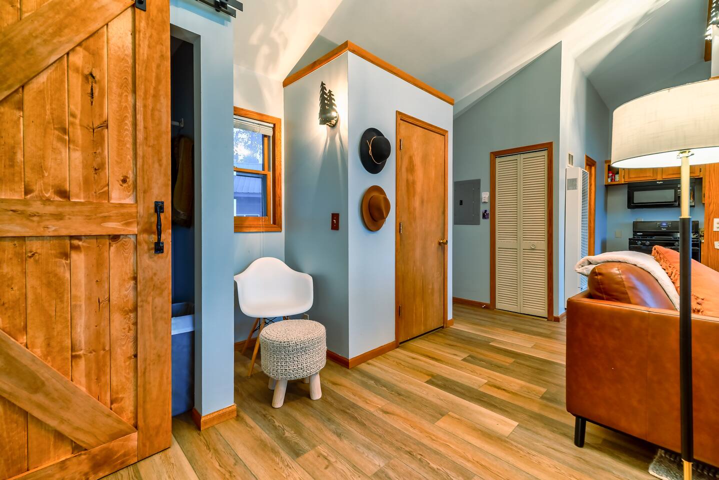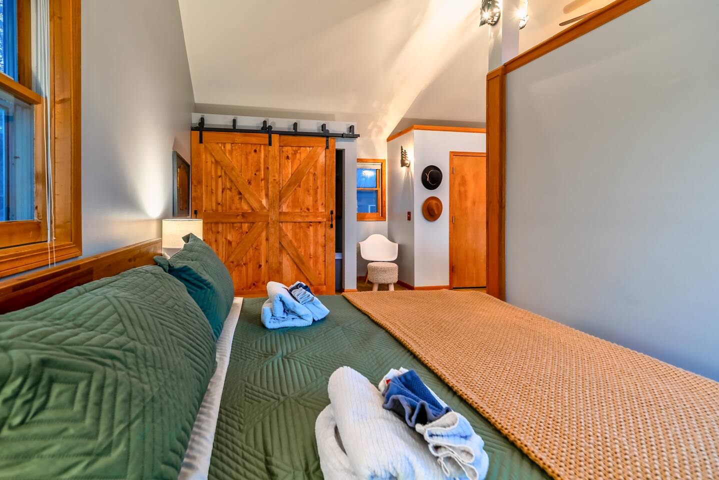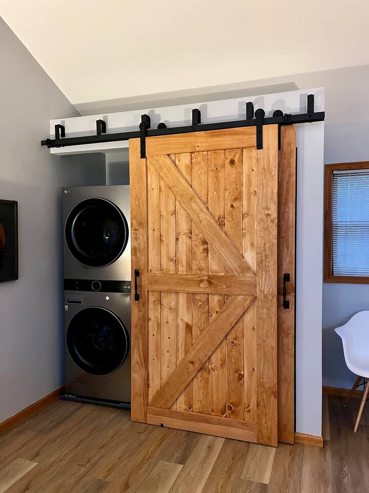 You’ll enter through the main front door that faces the garage using an easy-to-use electronic keypad — no need to worry about keys! Your unique door code will be sent via chat message before your arrival.