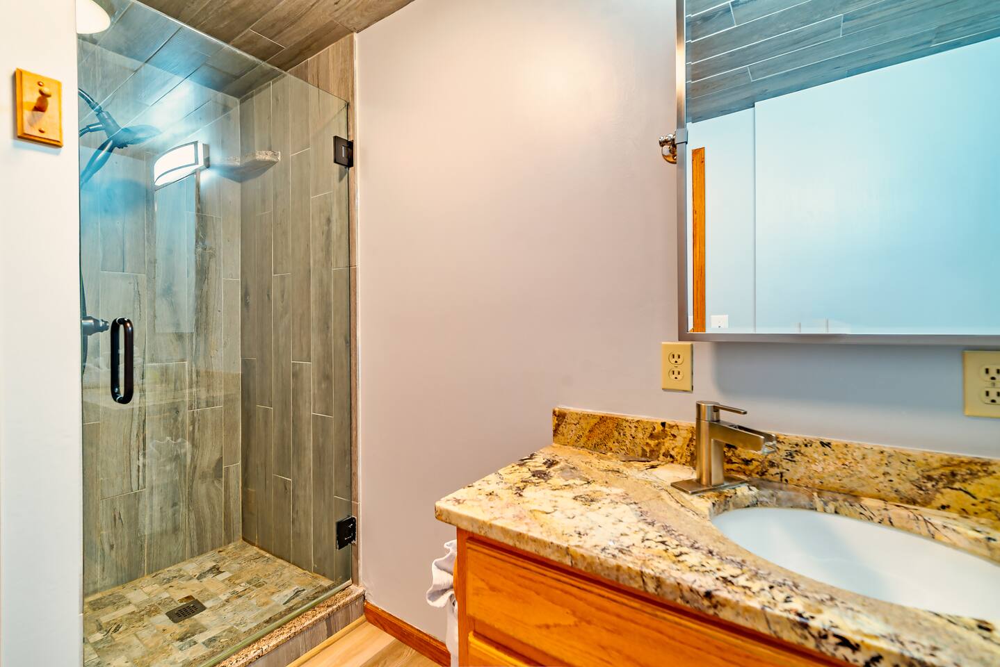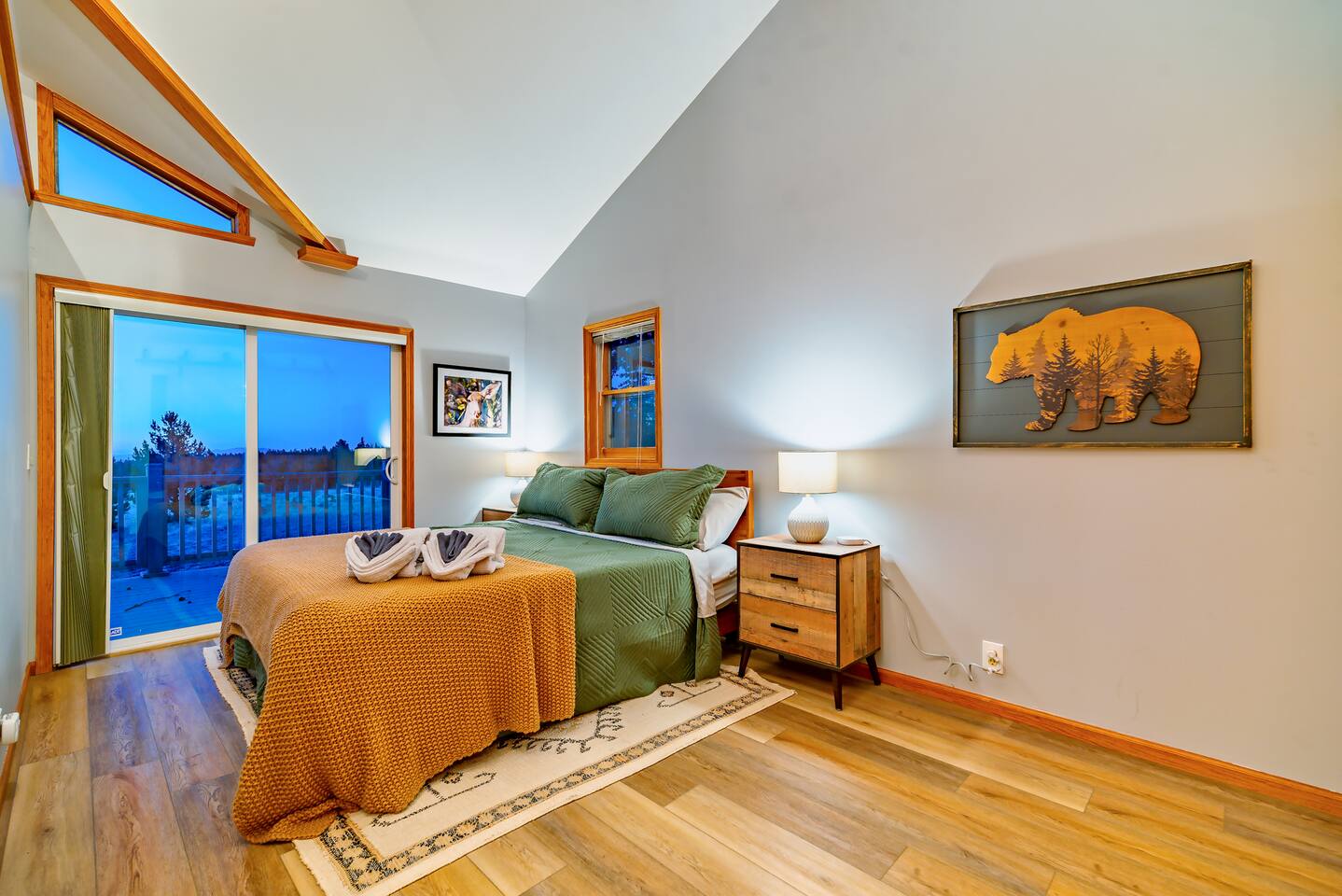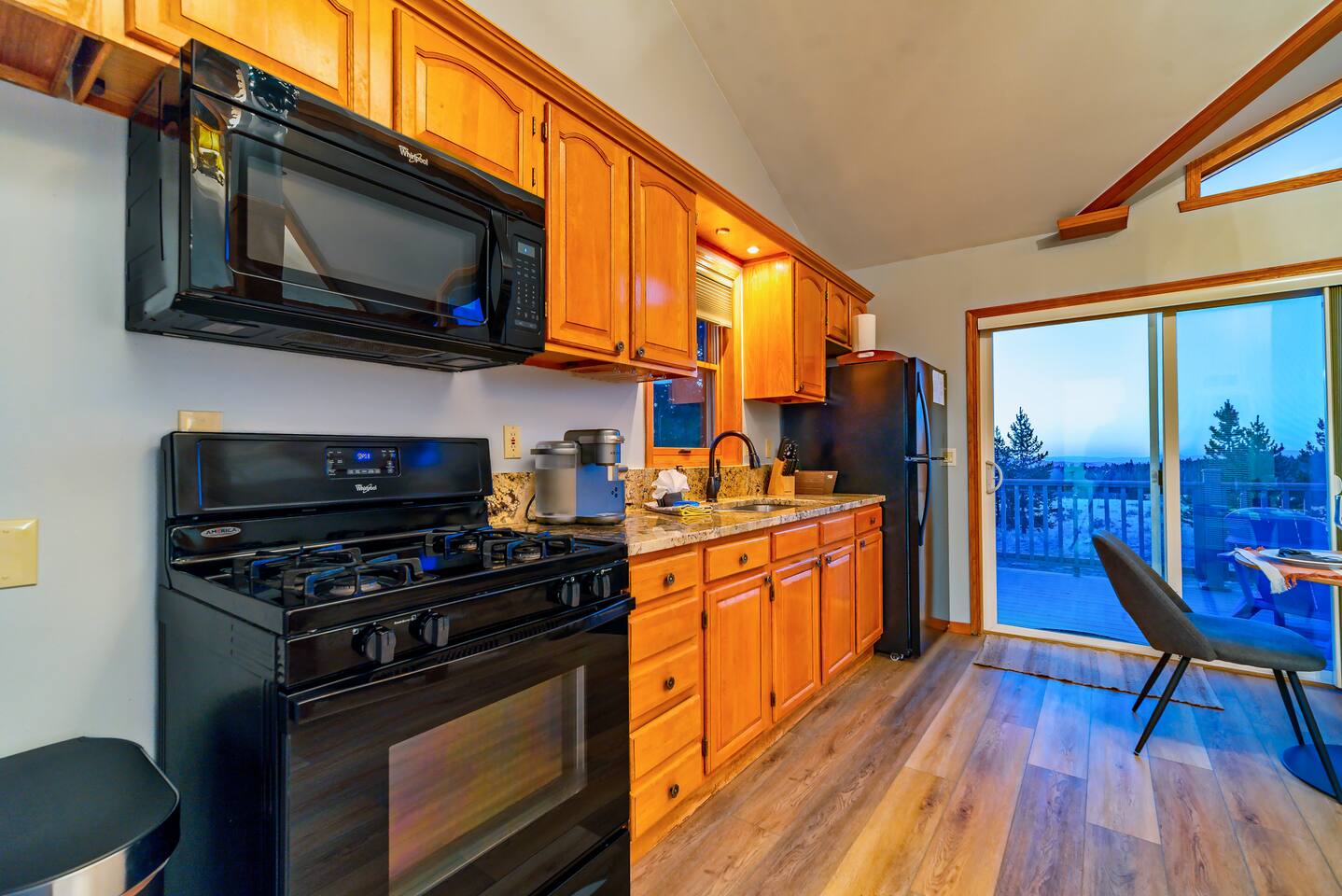You’ll enter through the main front door that faces the garage using an easy-to-use electronic keypad — no need to worry about keys! Your unique door code will be sent via chat message before your arrival.